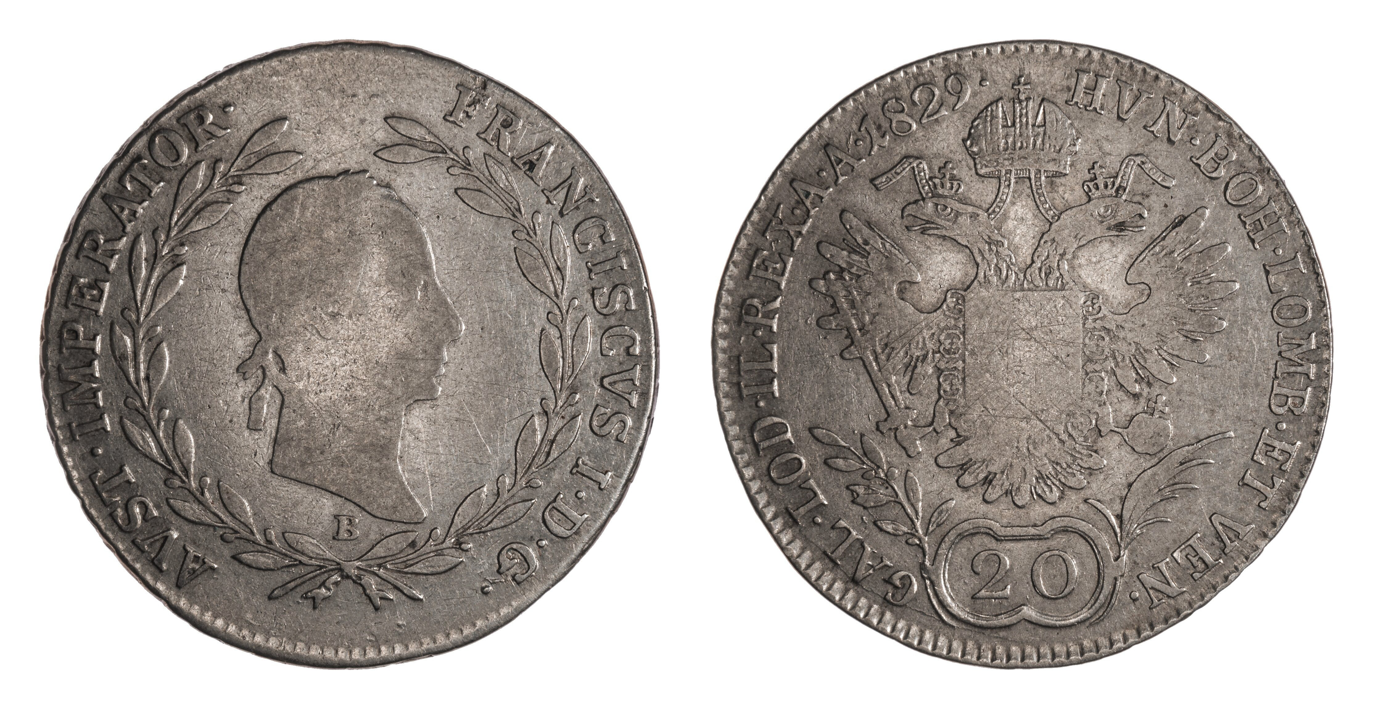 Rakousko - 20 krejcar 1829B, 6,56gSkladem 1 ks840 Kč/ ks840 Kč bez DPH