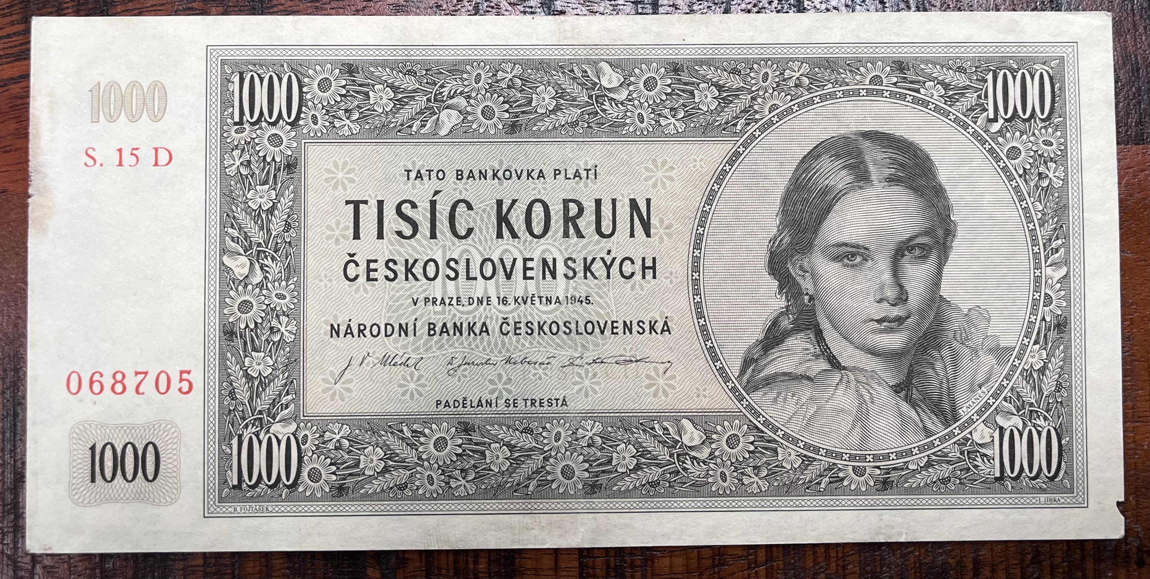 Československo - 1000 korun - 1946 - D - nejvzácnější série