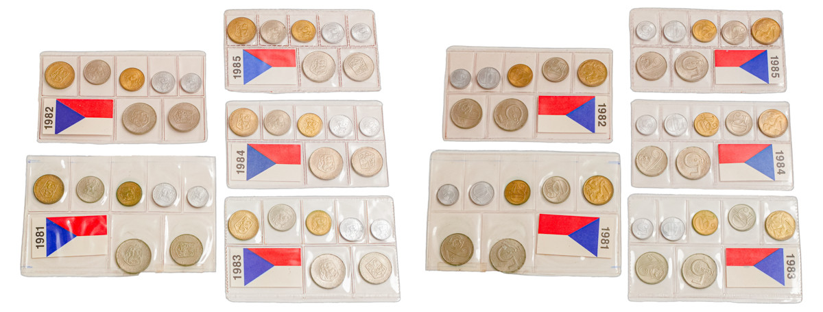 Tato sada obsahuje pět ročních oficiálních mint setů z let 1981, 1982, 1983, 1984 a 1985, každý set obsahuje sedm mincí (od 5 haléřů do 5 korun). Mince byly raženy v Kremnici, katalogová čísla KM-MS2, 3, 4, 5, 6. Jeden obal poškozen!