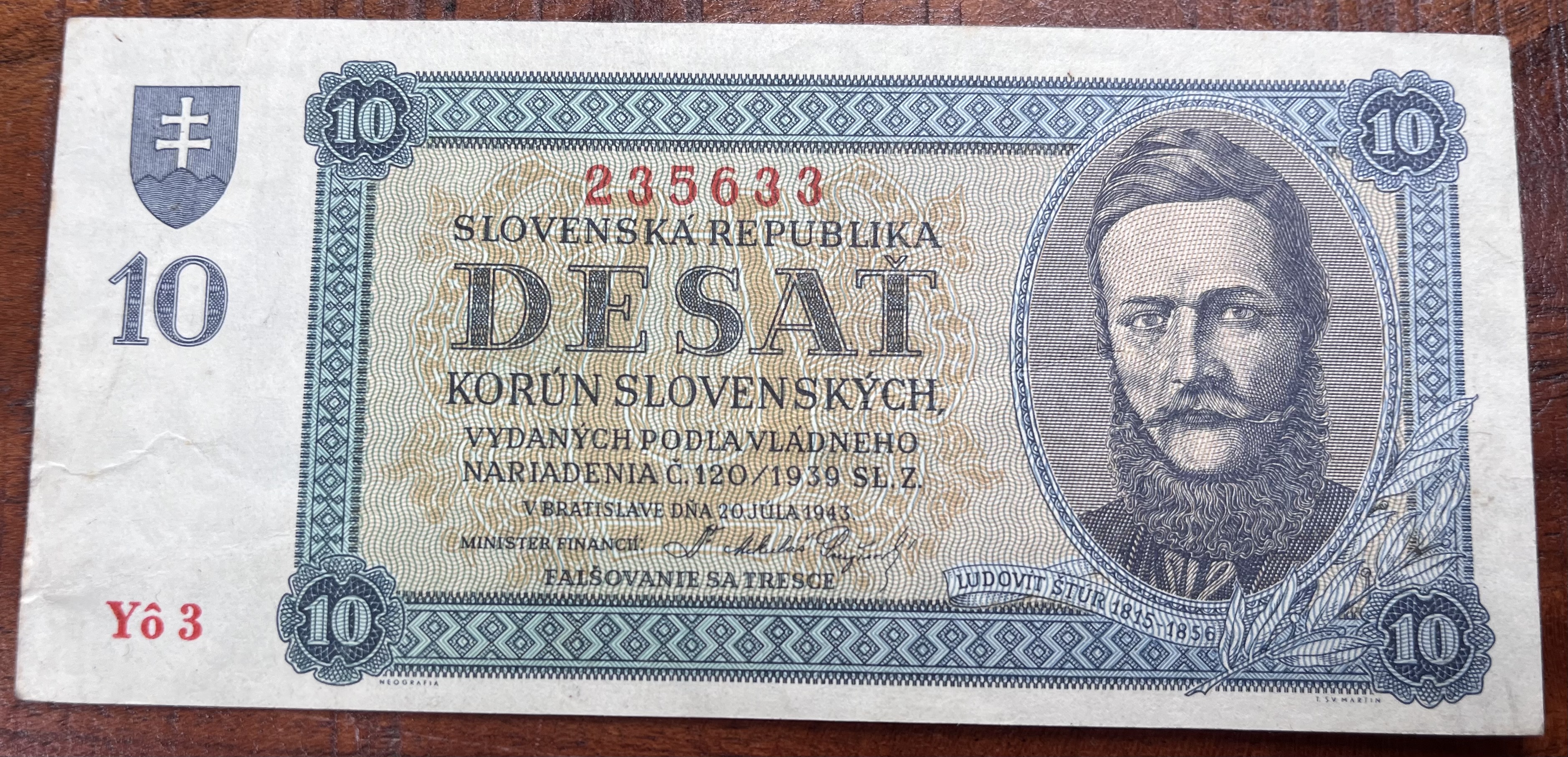 Československo -10 korún, 1943, YO 3