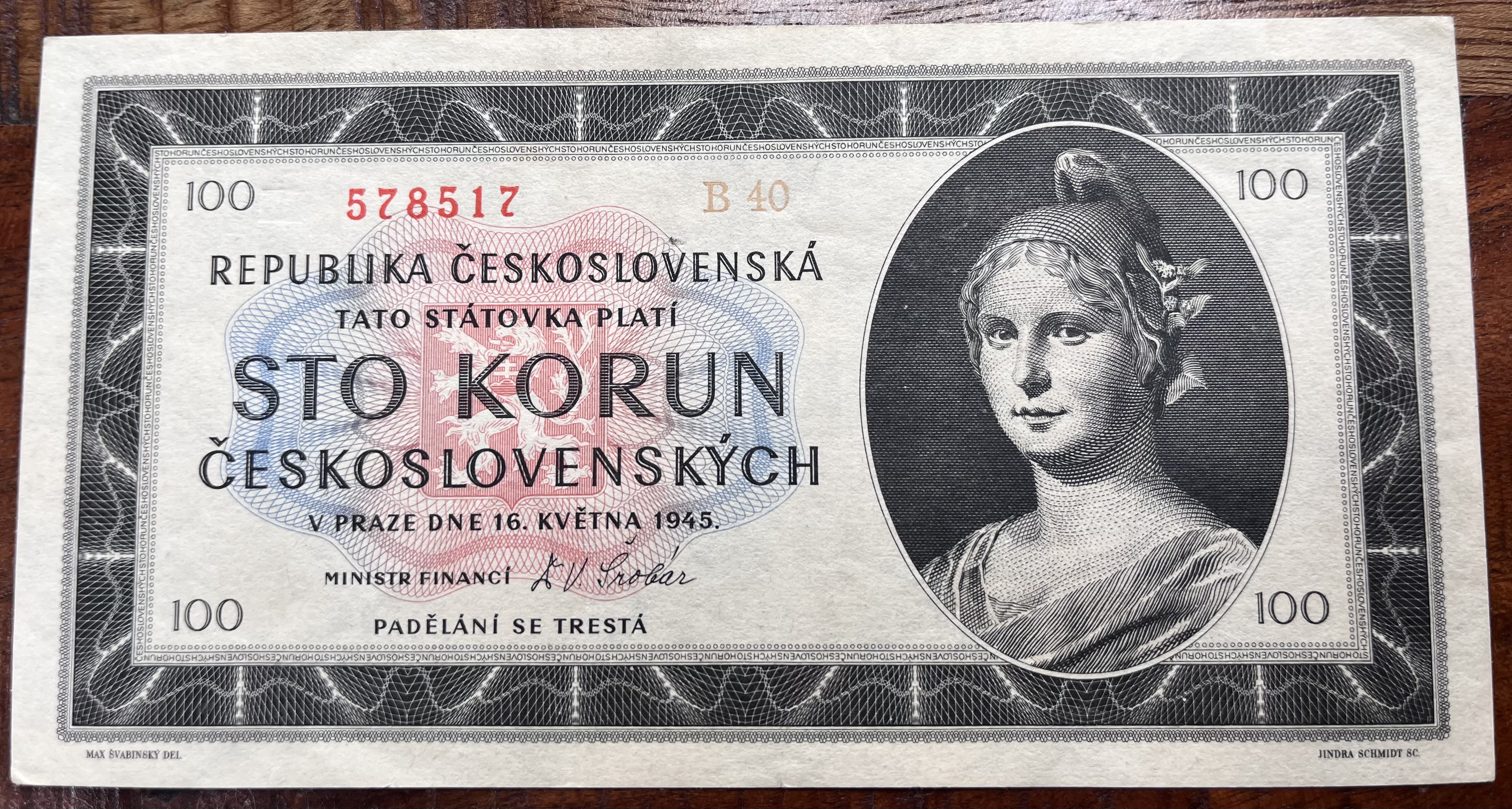 Československo -100 korun, 1945, B 40, AuncSkladem 11 700 Kč1 700 Kč bez DPH