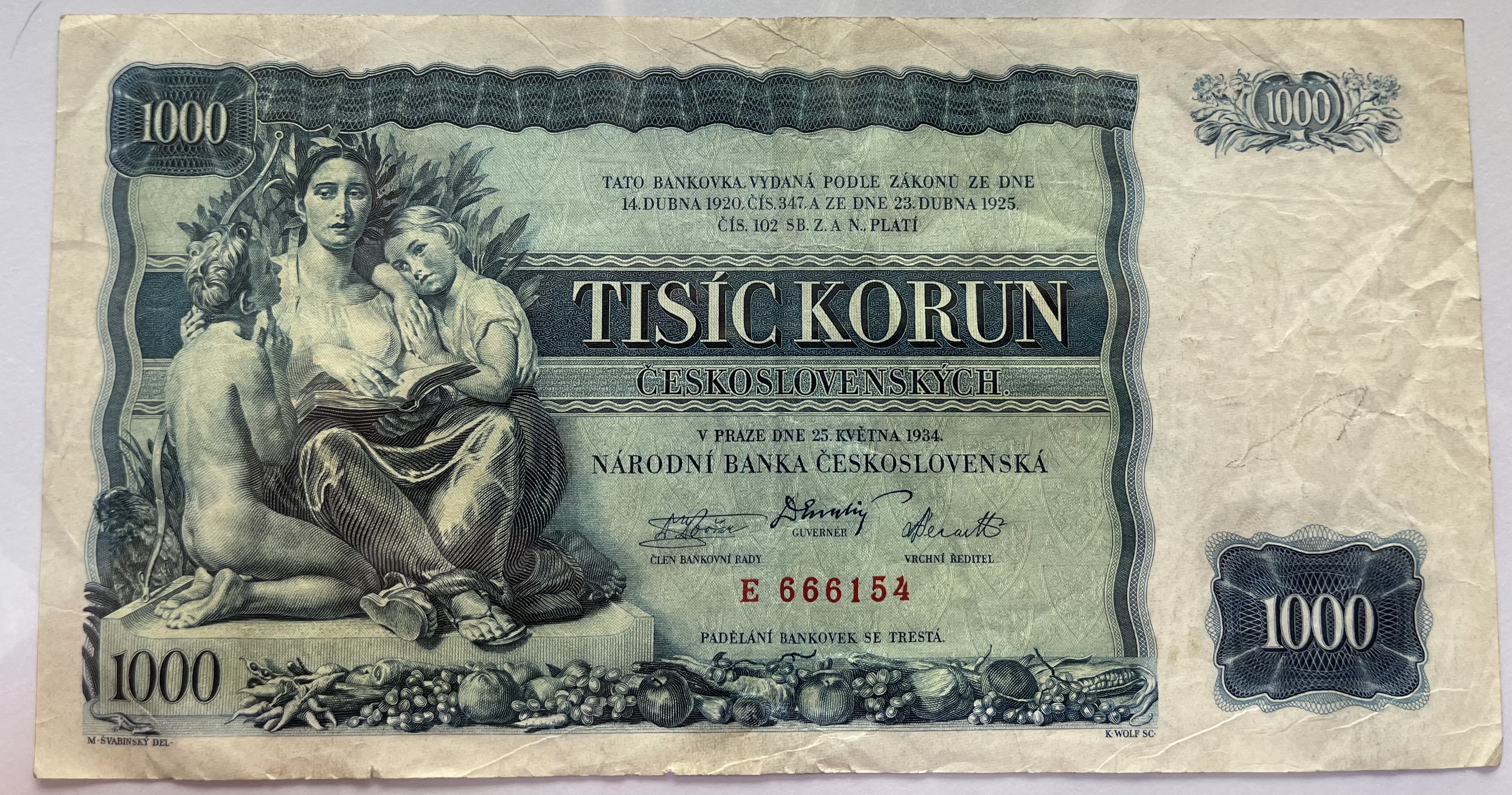 Československo -1000 korun, 1934, E