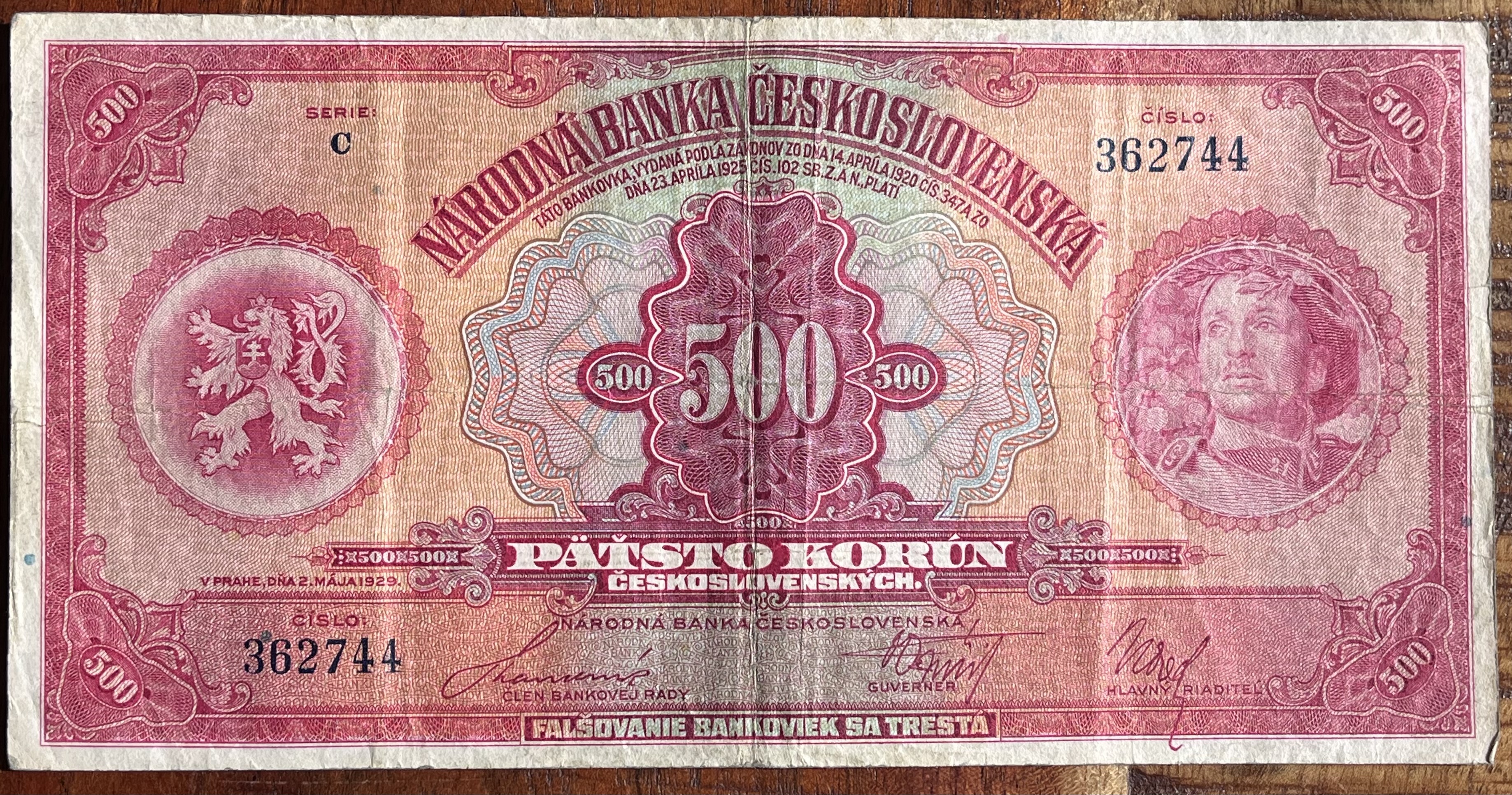 Československo -500 korún, 1929, CSkladem 13 400 Kč3 400 Kč bez DPH