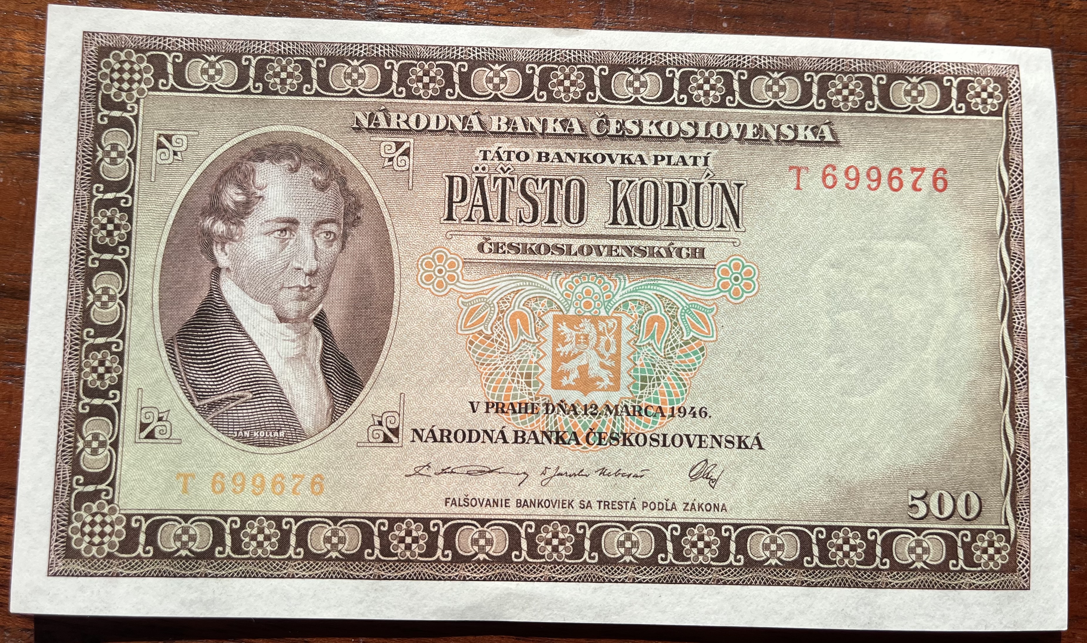 Československo -500 korún, 1946, T, UNCSkladem 14 300 Kč4 300 Kč bez DPH
