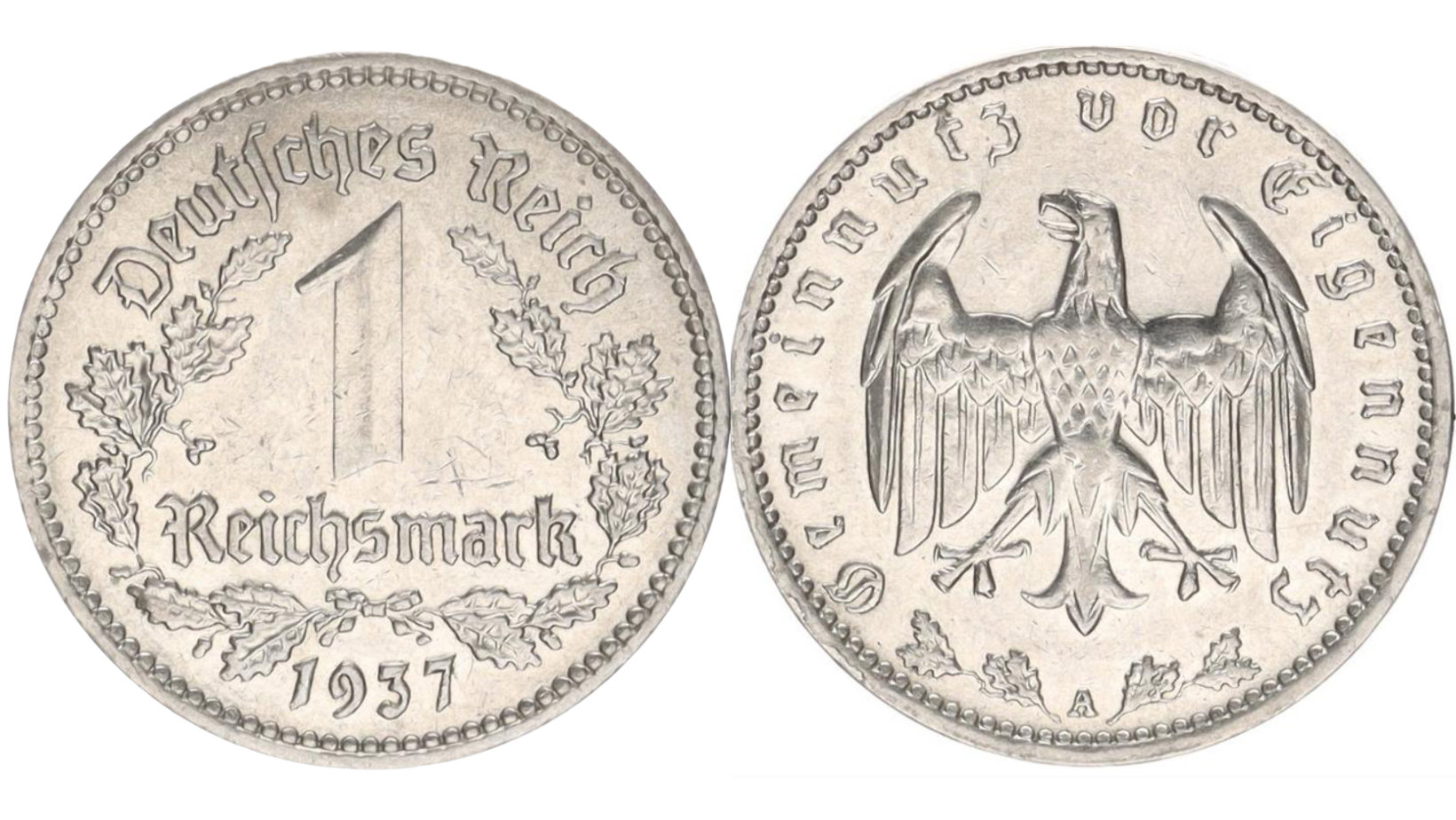 Německo - 3 říše, 1933-1945, 1 RM 1937 A, Zachovalost: 0-/0-Skladem 1250 Kč250 Kč bez DPH