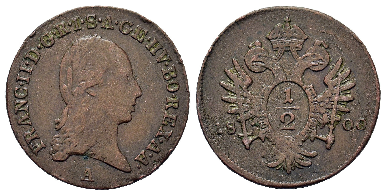 Austria Franz II (1792-1806). 1/2 Kreuzer 1800 A (21mm, 2g). KM 2108.