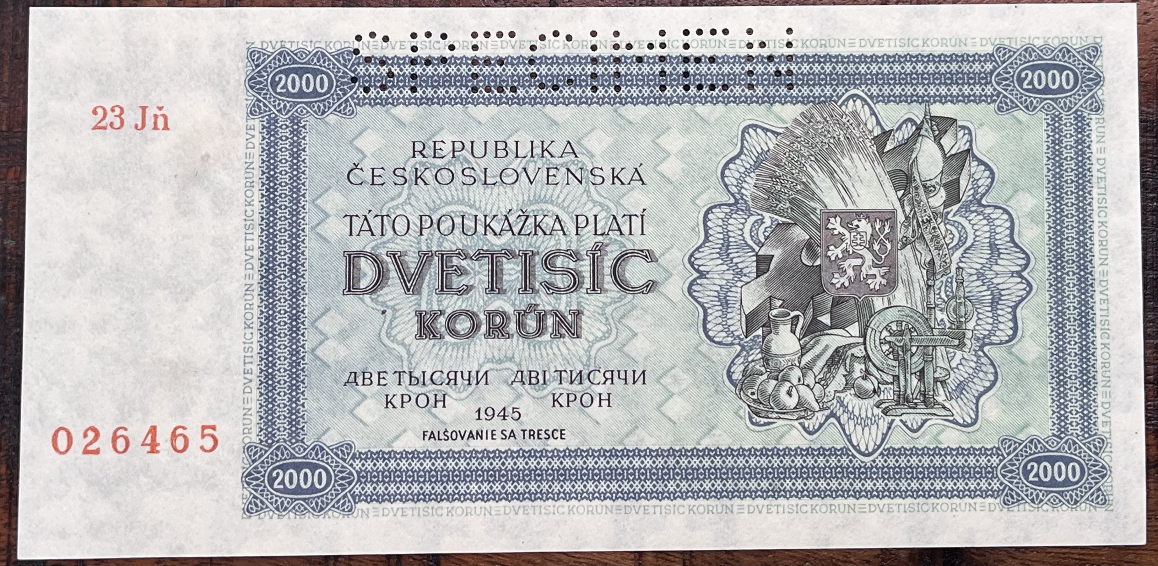 Slovakia - 2000 koruna - 1945 - Jň - Specimen